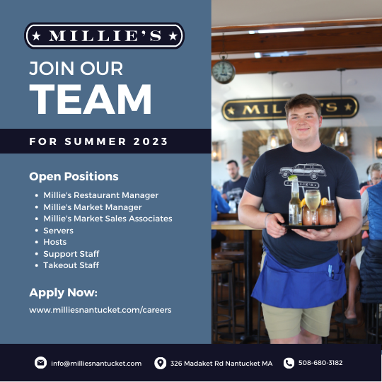 Drive, bike, or take the NRTA shuttle out to Madaket and share the experience of Millie's. The views, the sunset, the food, and the cocktails... It's sure to become your favorite memory of Nantucket.